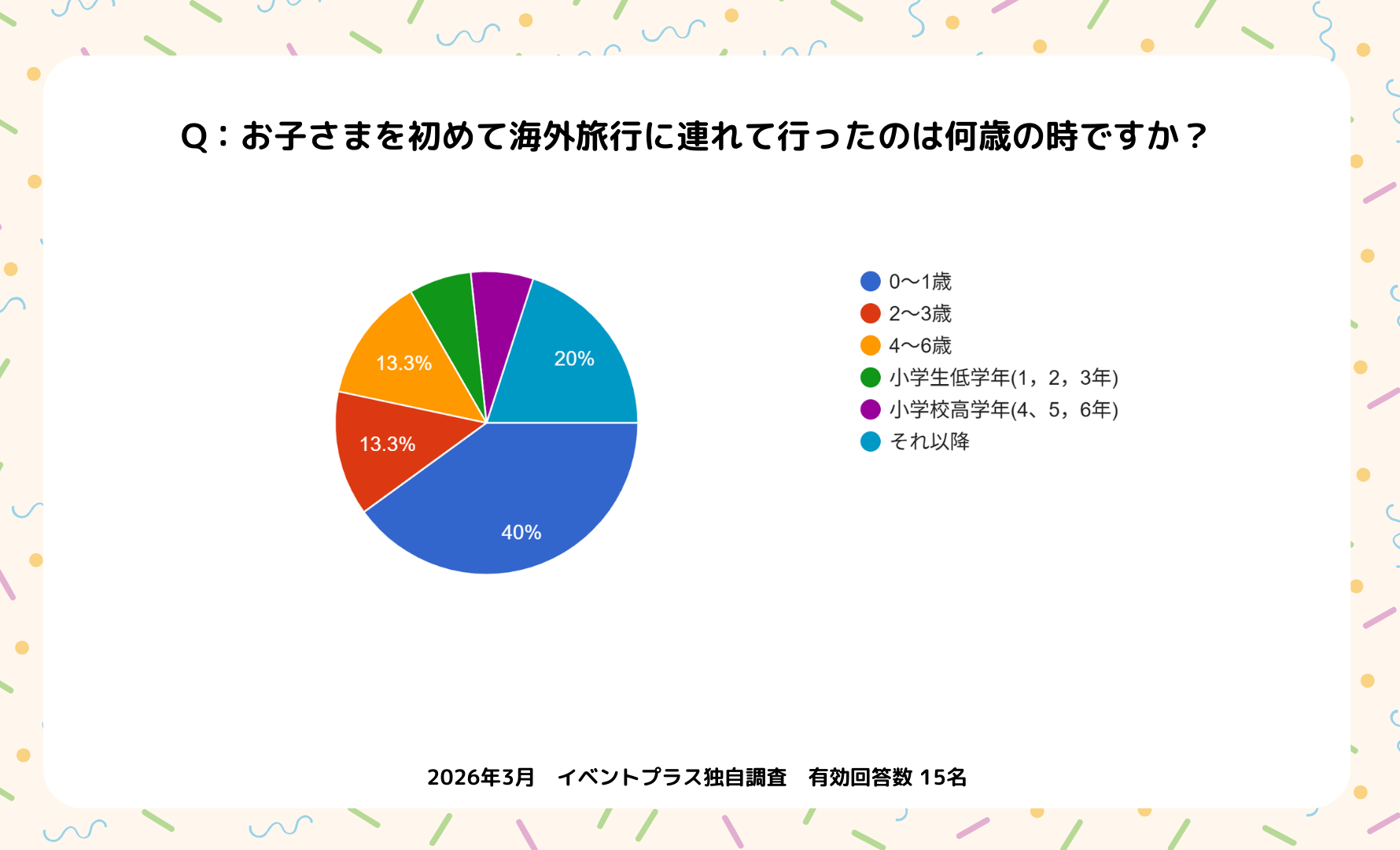 アンケートでは、0~2歳で海外旅行デビューした家庭が多数派でした。