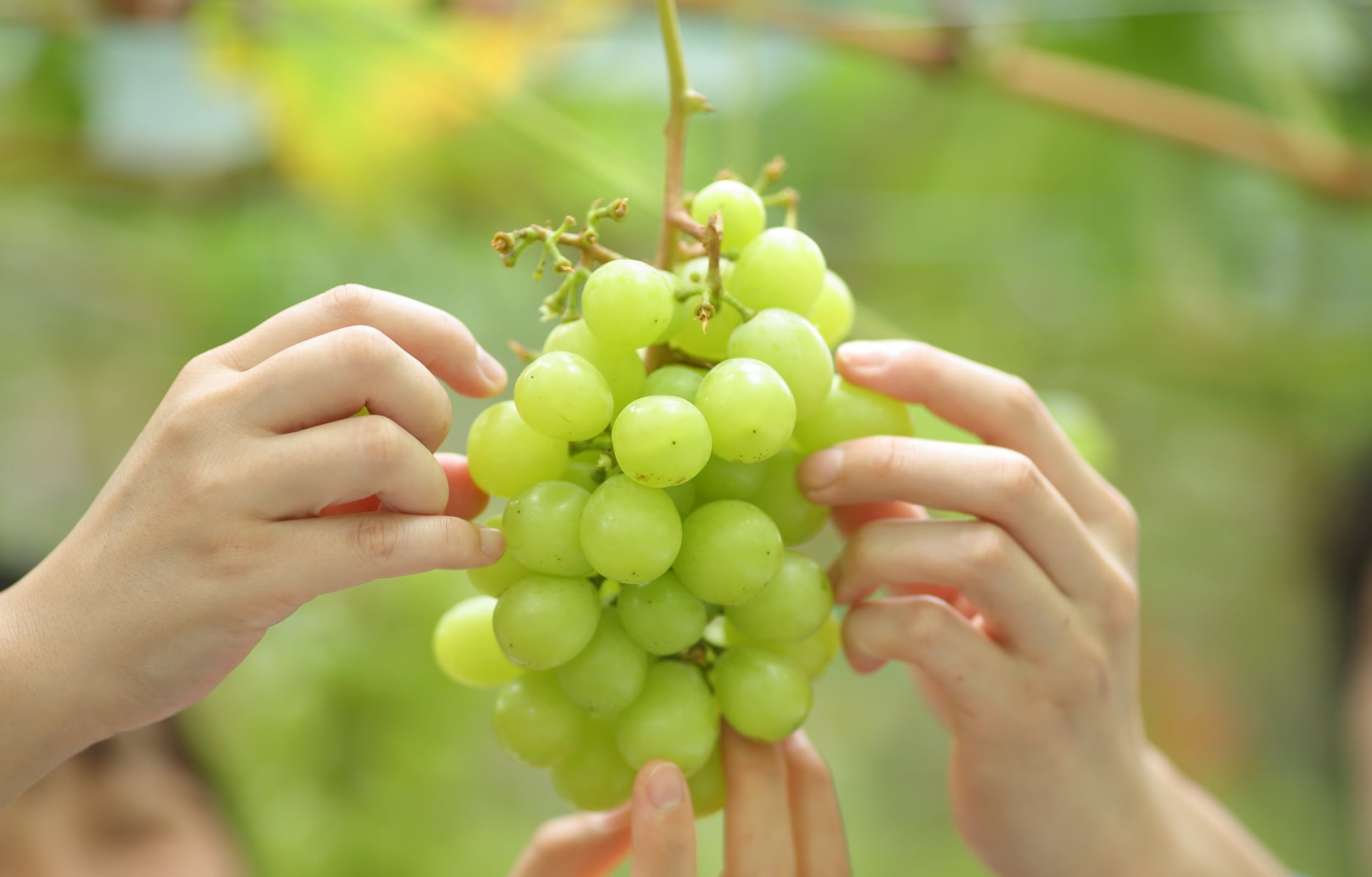 秋と言えば、やはり実りの秋!秋の収穫体験としてシャインマスカット狩りに挑戦してみましょう。