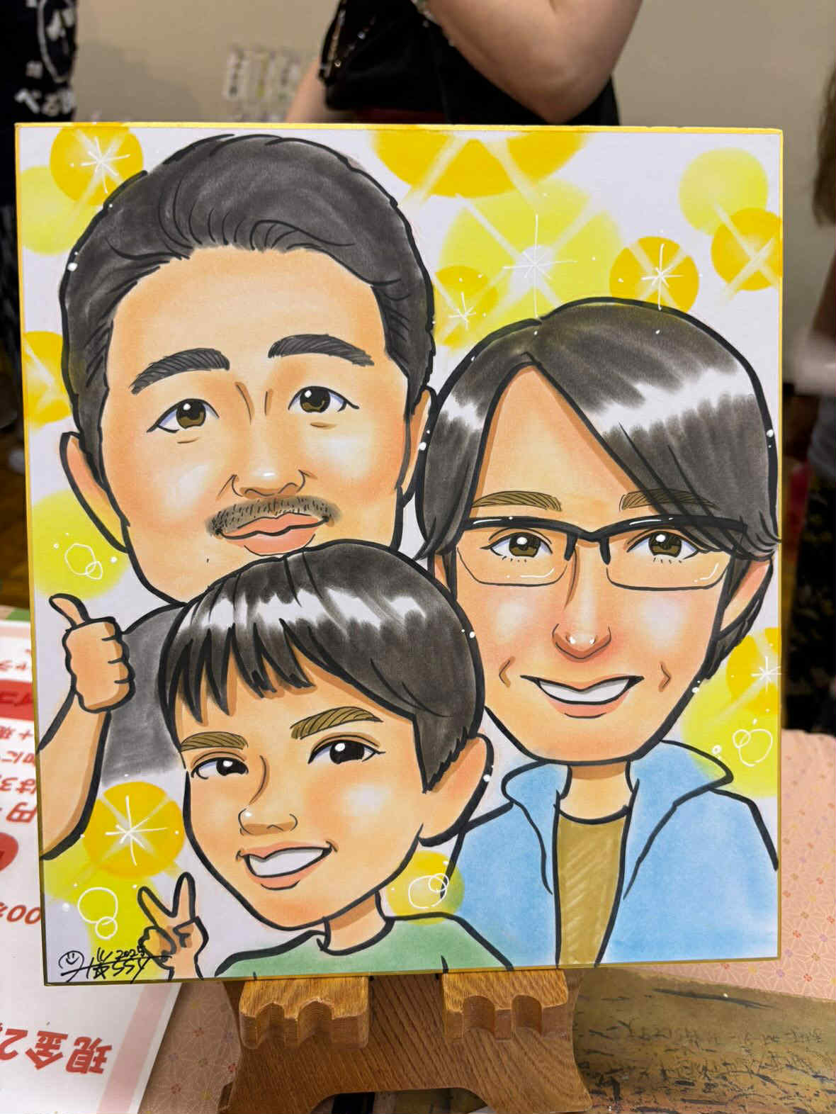その場で描いてもらえる「似顔絵体験」!お子さまのかわいい表情やご家族の笑顔を、温かいタッチのイラストに仕上げます。思い出づくりにぴったりな体験です。