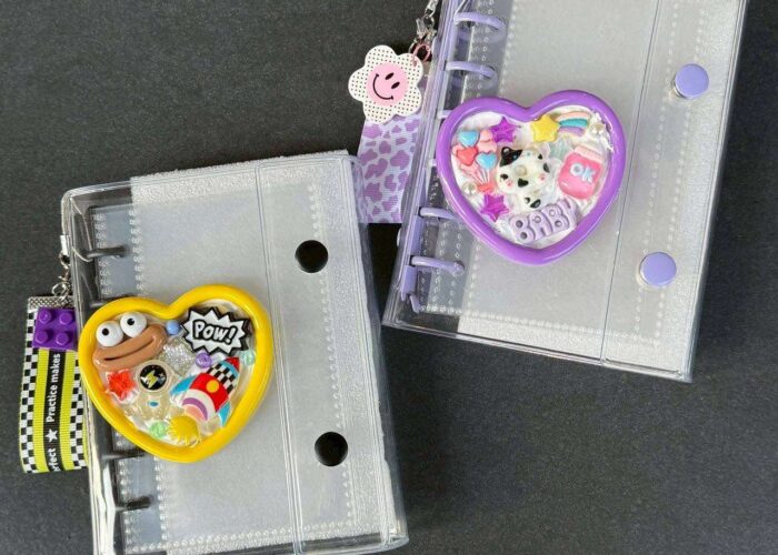 好きな色のシール帳ベースを選び、かわいいモチーフで自由にデコレーションします。